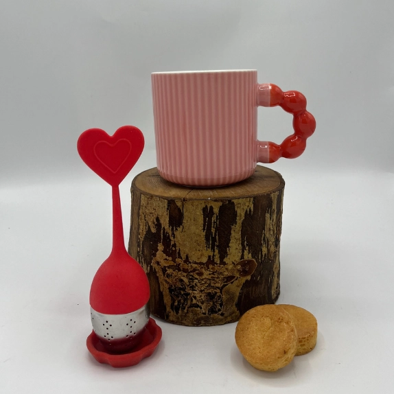 MUG PERLE RAYURE ROSE